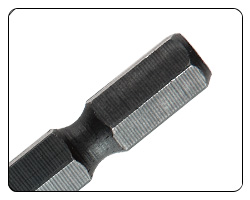 Drážkovaná šestihranná stopka zabraňuje sklouznutí ve sklíčidle vrtáku nebo prodloužení bitu.